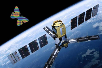 人造地球卫星在太空中飞行时,会受到太阳光的强烈辐射,向阳面温度往往高达200℃,而背阴面温度却会降到零下200℃,这样极端的温度变化容易使卫星上的各种精密仪器、仪表被烧坏或冻裂。科学家从蝴蝶利用鳞片调节体温上得到灵感,为人造地球卫星设计出了一种高效率的调控温度的装置,使人造地球卫星的部分表面也有和蝴蝶一样的“鳞片”,帮助卫星进行自身的温度调节。