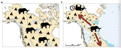 加拿大麦克马斯特大学科学家埃米尔·卡平思金及其同事,此次研究了北美洲各机构保存的美洲乳齿象化石骨骼和牙齿样本,并对33个样本进行了完整线粒体基因组测序(团队的分析中还包括另外2个已发表的基因组)。研究人员鉴定出了5个不同的乳齿象种群(或称分支),其中2个种群源自白令陆桥(历史上连接俄罗斯与美洲的地区)的东部。他们在白令陆桥东部种群的样本中未检测到年代上的重叠,说明这两个分支可能是分别扩张到该区域的。这与间冰期正好发生重叠,那时的温暖气候开始支持森林和湿地的出现。