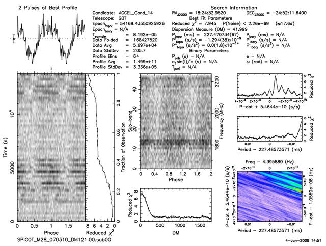 虽然现在有软件可以帮我们筛选出比较像脉冲星的目标,但最终我们还是需要通过肉眼查看每个候选体相应的参数(一般就是一张结果图),才能做出准确的判断。