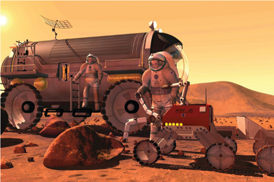 图2 航天员在火星表面开展地质考察,人与机器人的相互协作是必然需要