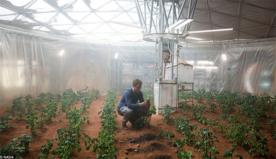 《火星救援》中,马克把部分居住舱改造成了自体循环的小农场,靠种植土豆维生。为了拍好电影,剧组也真的在摄影棚内种了土豆,并完全任其自然生长,以模拟马克在火星上种植食物求生的场景。原著小说也有大部分内容详细介绍火星生存所需的农业种植技术。因此,种植农作物是太空探索和火星探测的重要项目。