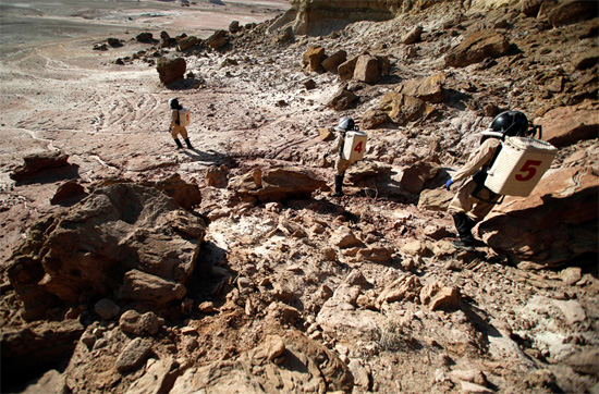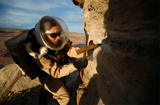 图3 科学家在犹他州沙漠中找到了类似火星表面的模拟试验场,设立了火星沙漠观测站,让航天员在在火星模拟场景中开展模拟生存、地质考察、植物栽培等(©Jim Urquhart/Reuters)