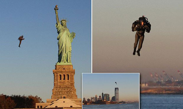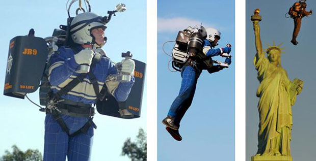 “喷气背包”哪家强? 十一月以来,各媒体连报三条“喷气背包”新闻: 1. 阿联酋订购新西兰人的喷气背包,武装消防队,应对摩天大厦火灾。 2. 美国人穿喷气背包飞越自由女神像: