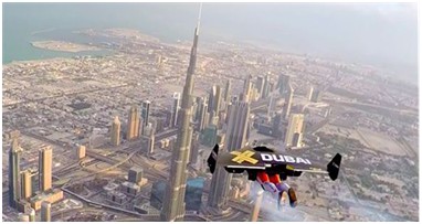 6、瑞士人穿喷气背包高空横跨迪拜塔: