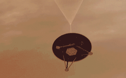 在距离火星表面约16千米时,一顶超音速降落伞在飞船背部打开,15秒后,下部的隔热罩分离。