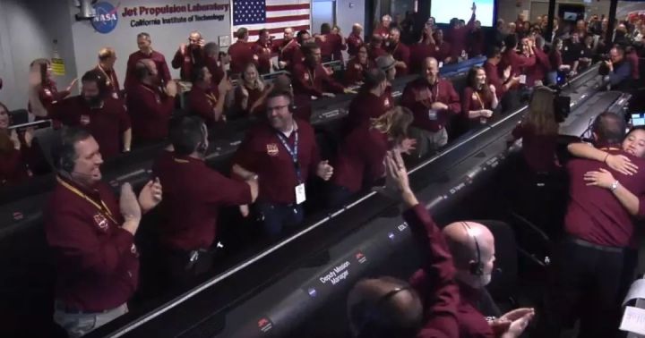 “洞察号”顺利着陆工作人员喜悦庆祝(图片来源:NASA)