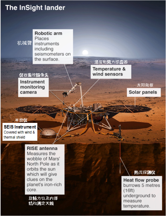 虽然“洞察号”此次着陆采用的是“老掉牙”的反推着陆腿式,长得也和“凤凰号”非常像,但还是有一些创新的,打卡的任务也是前所未有的!