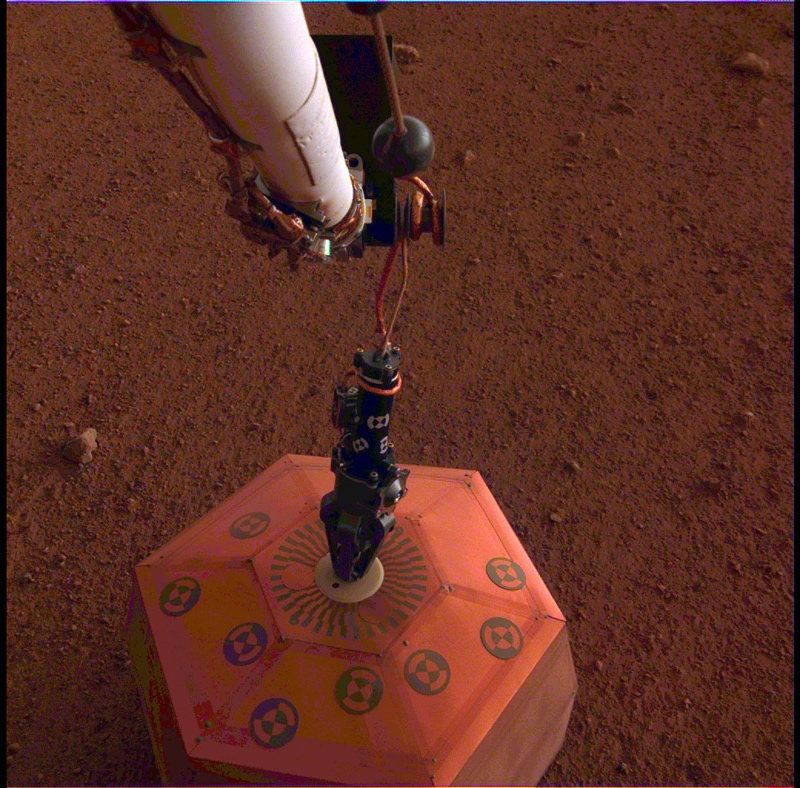 “洞察号”部署星震仪(图片来源:NASA/JPL/Caltech)