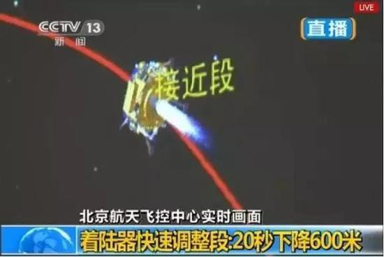 嫦娥3号接近段制动动画(图片来源:CCTV)