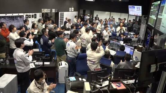 6:49,控制室突然收到了隼鸟2号传回的确认已经成功着陆的信号,全场陷入沸腾。