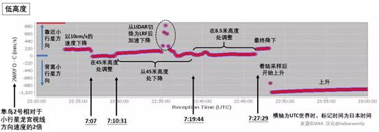 在下降着陆的最后阶段,由于需要调整探测器的姿态倾斜采样,那么原本的高增益天线就不能指向地球方向了,所以在这几十分钟时间里,隼鸟2号只能借助低增益天线传回的多普勒频移信号来了解隼鸟2号的动态。