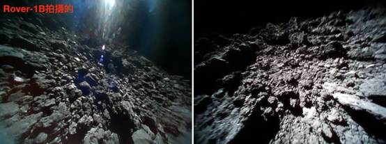 2018年9月23日,巡视器MINERVA-II-1B在着陆阶段和着陆后不久拍摄的照片,即使在这么近的情况下看,龙宫表面也都是遍布石块的。来源:JAXA[11]