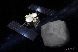 隼鸟2号和小行星龙宫的艺术假想图。来源:JAXA[1]