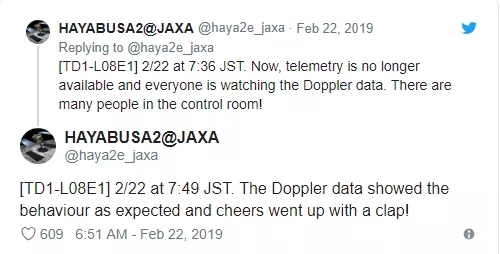 事实上,最早确认隼鸟2号顺利完成着陆并开始上升,也是多普勒信号告诉我们的。