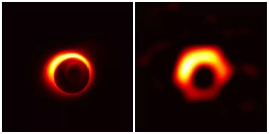 因此,尽管我们对事件视界望远镜拍摄的首张黑洞照片非常期待,但如果最终看到公布的照片不那么美观和清晰(比如像上图右边的样子),也请大家不必感到意外。