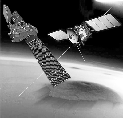 火星微量气体轨道探测器(左)和“火星快车”艺术效果图图片来源:欧空局